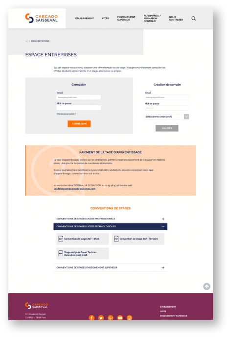 L’institution privée catholique Carcado Saisseval a confiée la refonte de son site à l’agence La Jungle. L’identité a également été repensée (logo et charte graphique) afin de moderniser l’ensemble de la communication. Le site utilise le CMS WordPress afin d’offrir une grande liberté dans l’édition du contenu mais également d’être simple à prendre en main. Une section dédiée aux offre d’emploi / contrats d’apprentissage a été développé afin d’aider les élèves et les entreprises à entrer en relation.