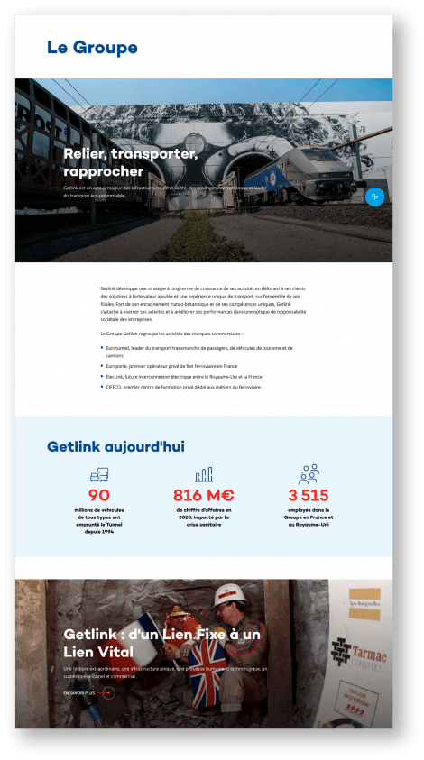 Getlink est un acteur majeur des infrastructures de mobilité, des échanges internationaux et un leader du transport éco-responsable en Europe, pour faciliter les échanges commerciaux entre le Royaume Uni et l’Europe.